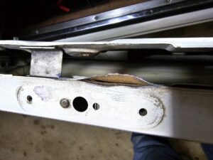 Zuletzt noch eine Schraube welche die äußere Leiste festhielt und alles war soweit heraußen. Interessant war, das hier deutlich weniger Schrauben/nieten die Zierleisten festhielten als wie bei den vorderen Türen. Hier wurden sie Großteils von diesen Metallclips festgehalten, welche aber alle komplett verrostet waren (schätze Kontakt Korrosion oder einfach unbehandelte Clips). Positiv war zumindest das auf dieser Seite diese Clips den Rost nicht soviel weitergetragen haben auf die Karosserie wie bei den Türen.