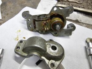 Während ich mich an die Arbeit hinten machte, hatte ich auch Hilfe von meinem Vater der sich den Dreiecksfenster Winkelgetrieben annahm. Hierfür wurde das eine, welches noch die originalen Nieten hatte, aufgebohrt, alles wurde gereinigt und erneut gefettet. Was hier deutlich wurde ist das die eine welle schon deutliche Abnutzungen hatte.